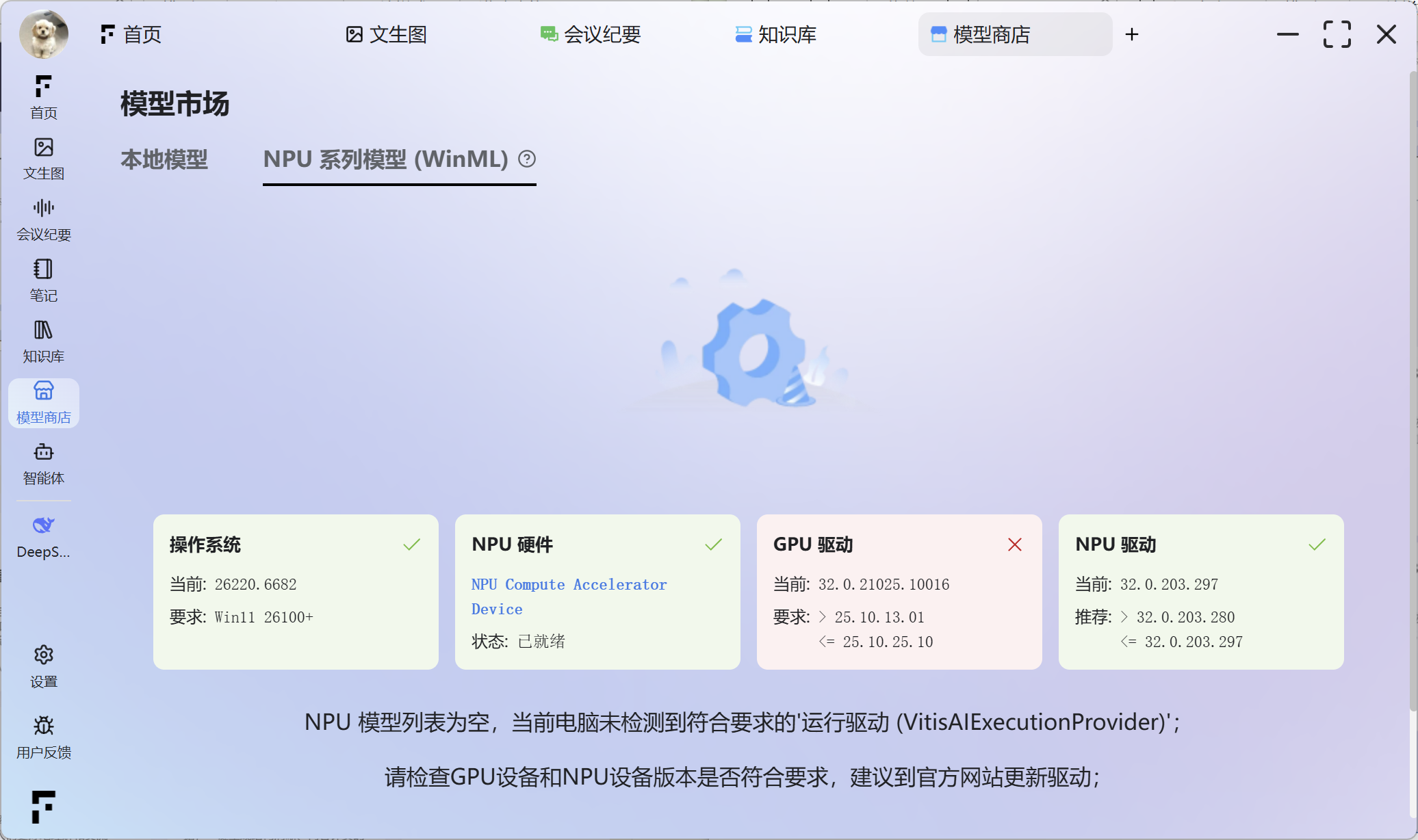 WML模型(运行在NPU)(打开会检测电脑是否适配,一般有两种原因:一种是电脑驱动的原因,一种是未经过授权的windows11版本)
