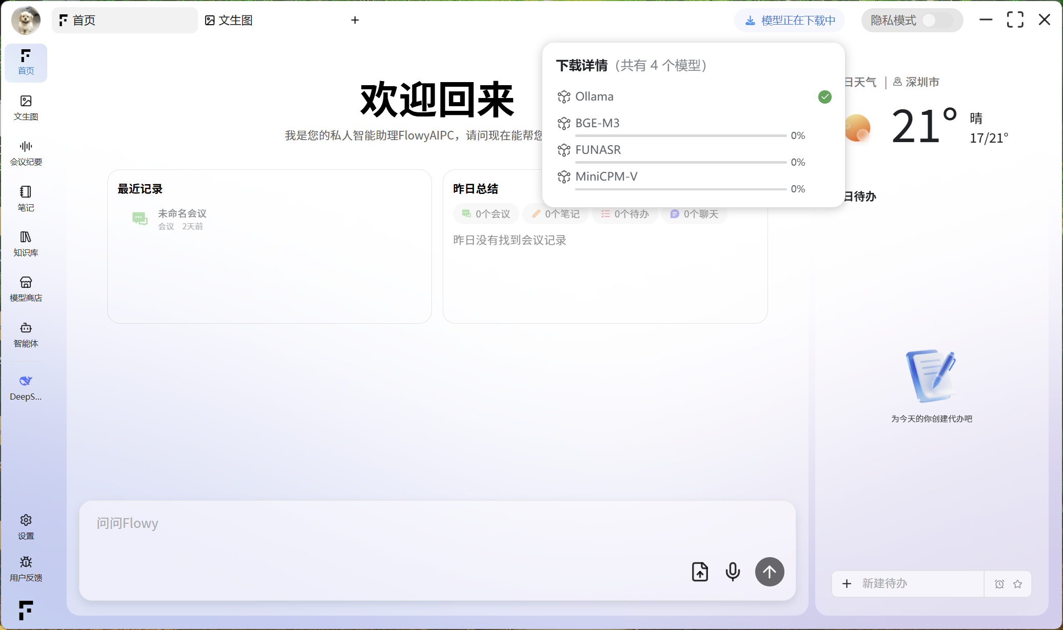 在您成功下载所需的四种模型后,重新启用隐私模式即可直接投入使用。