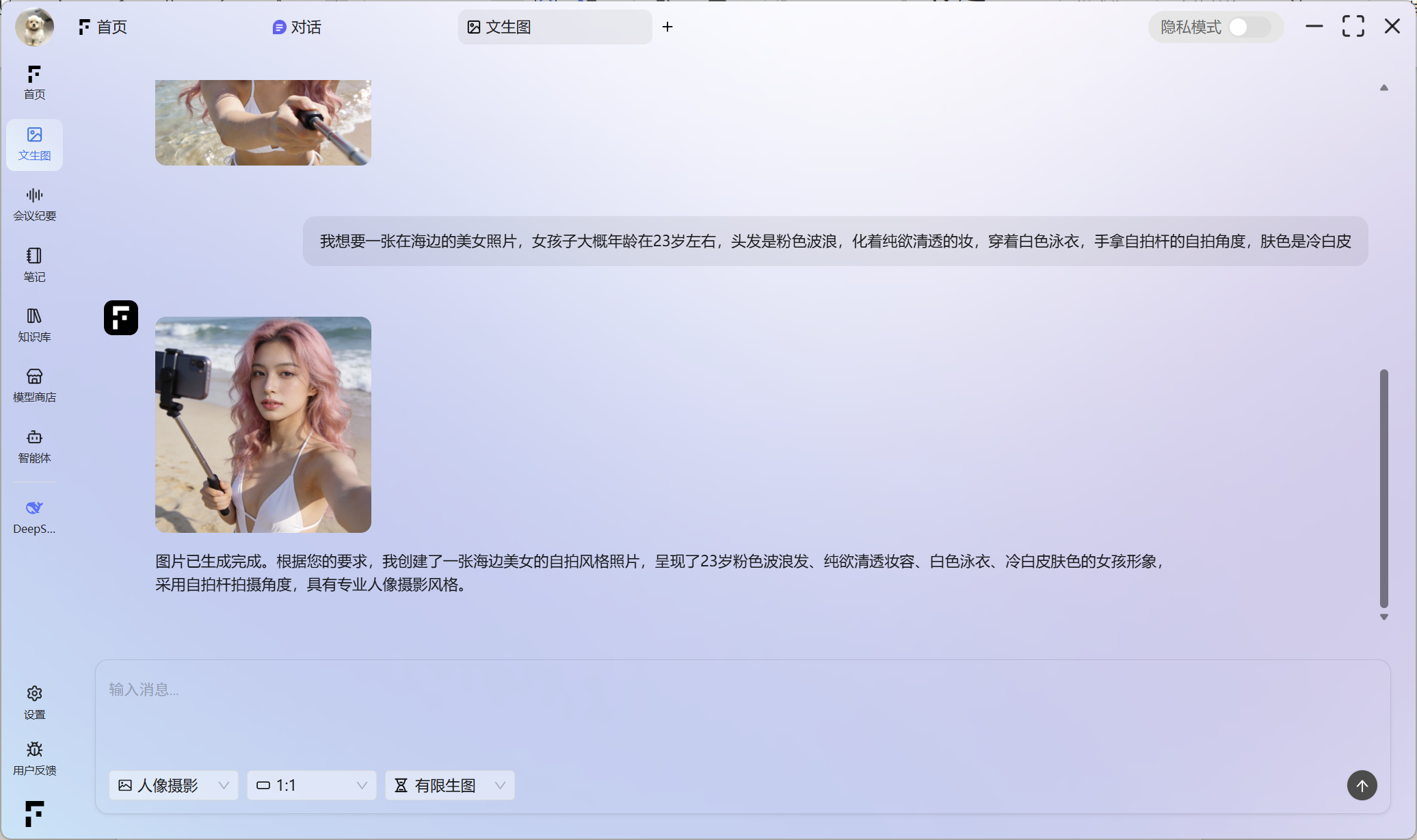 隐私模式一旦激活,软件内所有相关文件和交互记录(包括问答内容)均将严格存储于本地设备, 从而确保了数据的私密性与安全性。